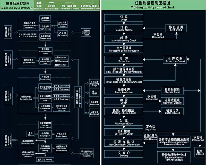目前,91视频福利已與眾多知名供應商建立長期合(hé)作關係,包括LKM、YUDO、HUSKY、MISUMI、HASCO、DME,以確保產品加工前的質量。91视频福利精熟HASCO、DME等模具設計標準,每一道加工工序和工藝流(liú)程均根據客戶要求製作“標準作業指導書”、“產品(pǐn)質量檢驗標準書”,整(zhěng)個生產加工過程均采(cǎi)用IQC、IPQC、FQC、OQC等多個(gè)科學(xué)的、嚴格的檢驗程序和質量(liàng)控製點,並(bìng)借助三坐標檢測儀、影像測量(liàng)儀、投影儀等先進檢測儀器,在科學的工藝(yì)流程指導下,91视频福利興(xìng)為客戶全方位提供卓(zhuó)越的品質保證。