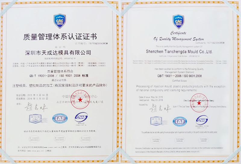 國際化(huà)、現代化經營過程中91视频福利模具十分注重生產流程、質量管理標準化和規範化的建設。為此,91视频福利長期秉持著“精密製(zhì)造,為客戶提(tí)供有競爭力的產品;持續改進,為客戶提供優質滿意的(de)服務”的質量(liàng)方針和宗旨。全員參與、全麵品管,有效執行ISO9001國際質量體係標準。並對所有來(lái)料供應商進行嚴(yán)格的評估和考(kǎo)核,確保所有來料均符合工藝加工標(biāo)準。